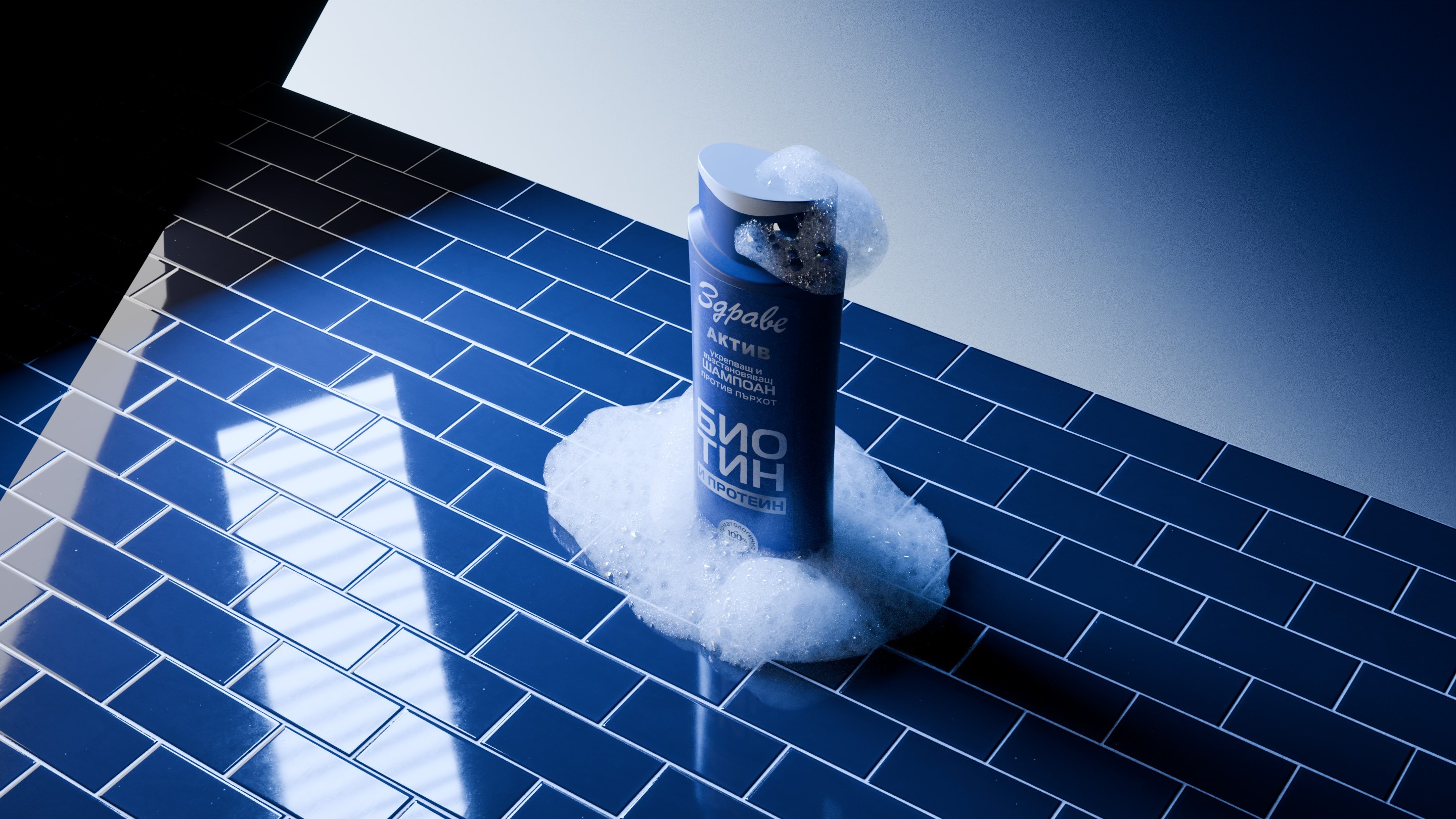 We began with the concept of soft-body bubbles — squishy, gentle forms symbolizing protein and biotin. They moved behind the bottle and hugged it in a fluid, comforting motion. The client liked the visuals but found them “too playful.”