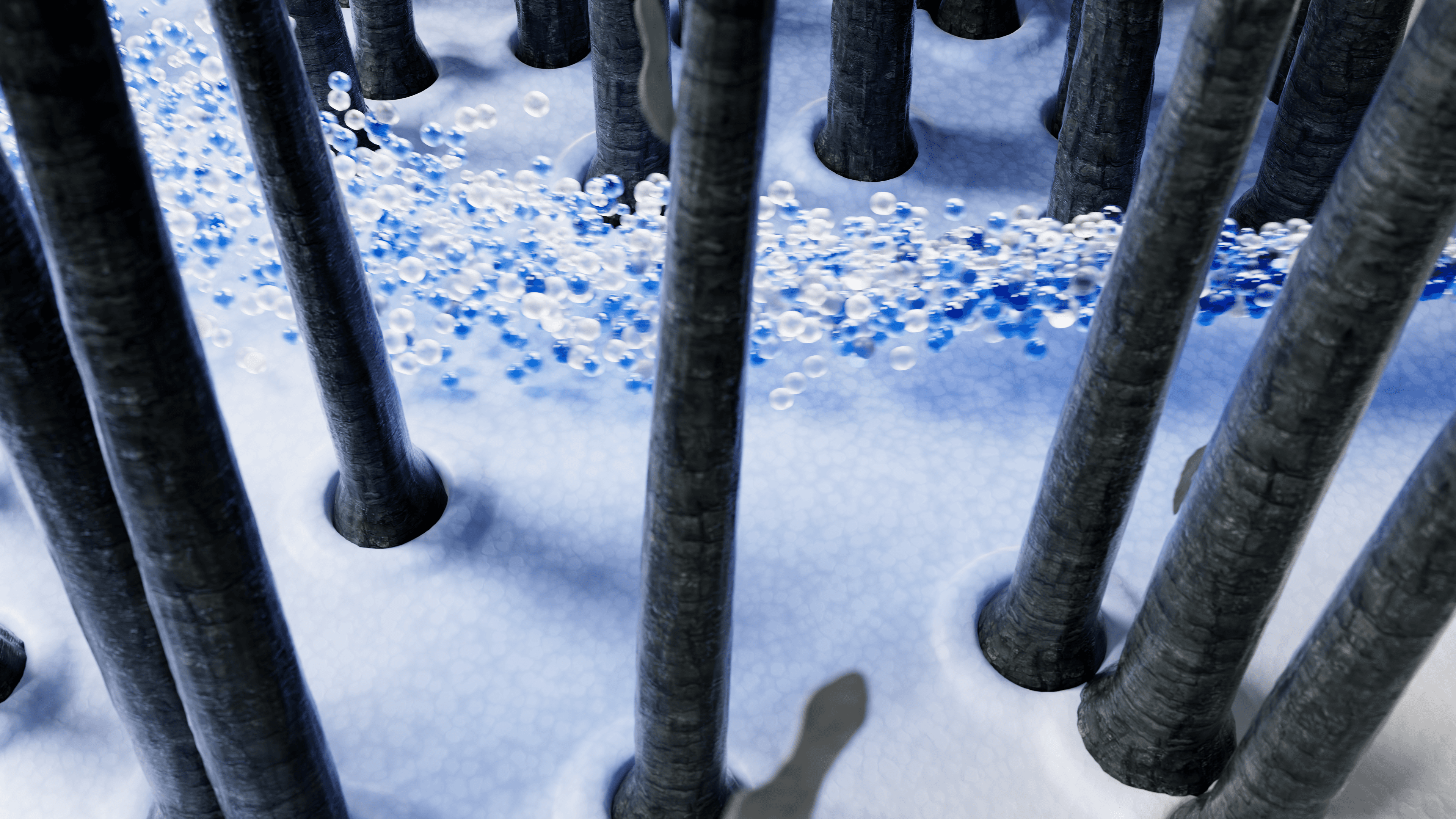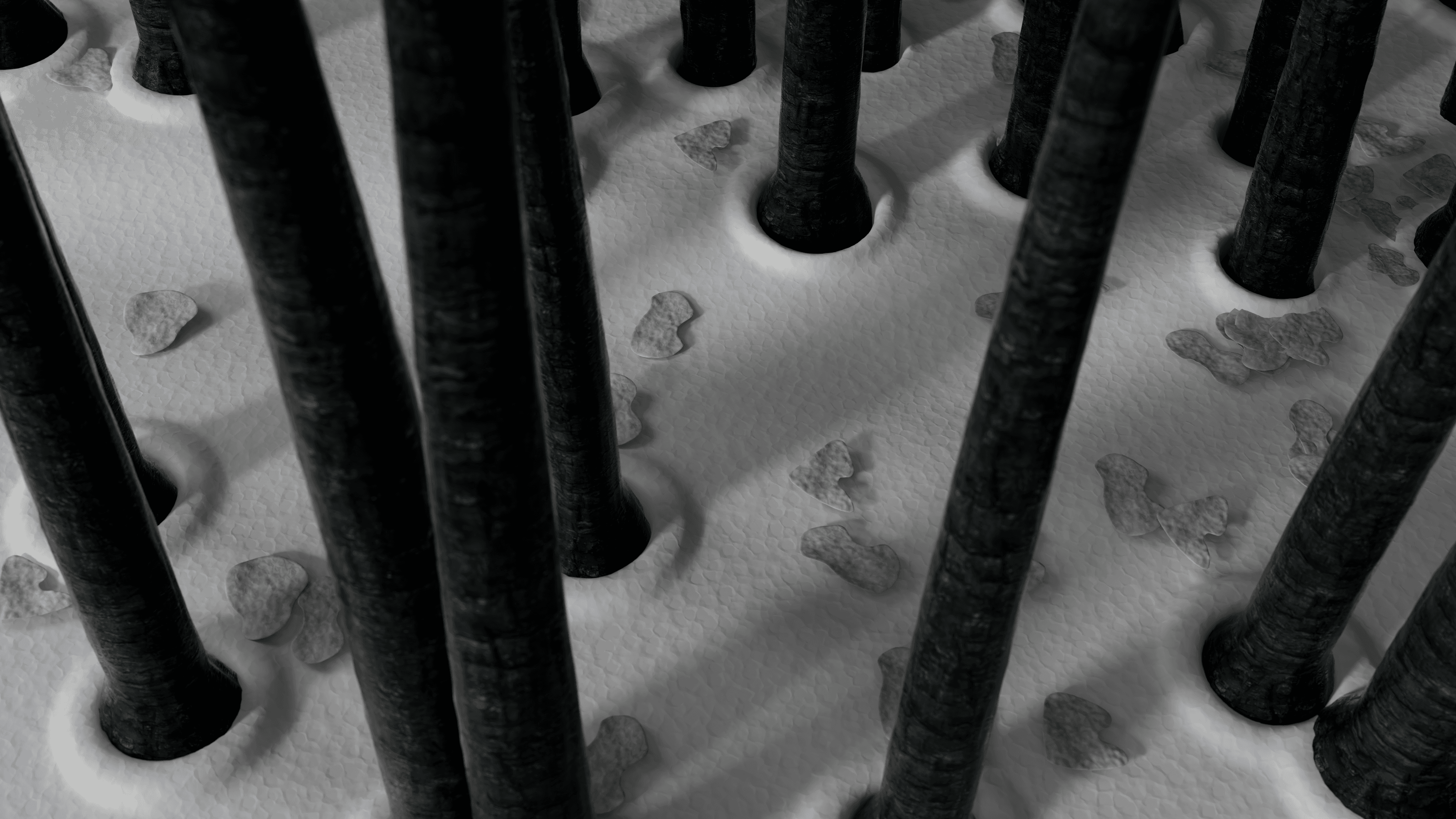 The film opens in a dark, stylized forest. Hair strands resemble tall trees, and dandruff appears as fallen leaves on a dry, gray scalp. As the protein and biotin, the film's main characters, move through, light floods in and the ground becomes nourished — turning the forest into a bright, healthy environment. This transformation sets the emotional tone for the entire film.