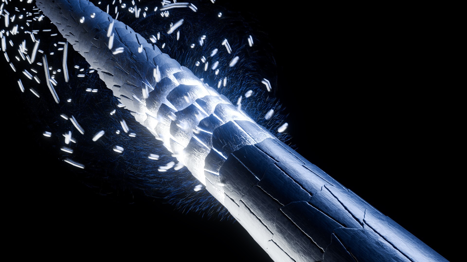We explored multiple visual variations of the healing effect, focusing on how the particles are absorbed by the scalp and interact with the inner structure.