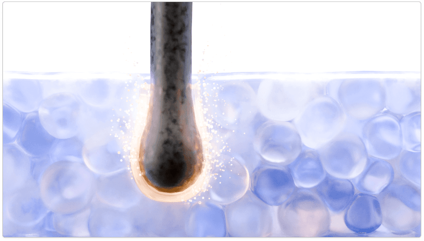 As we dive deeper into the scalp layers, we witness the follicles being actively nourished. The motion of our characters becomes more fluid and warm, reinforcing the idea of inner restoration.